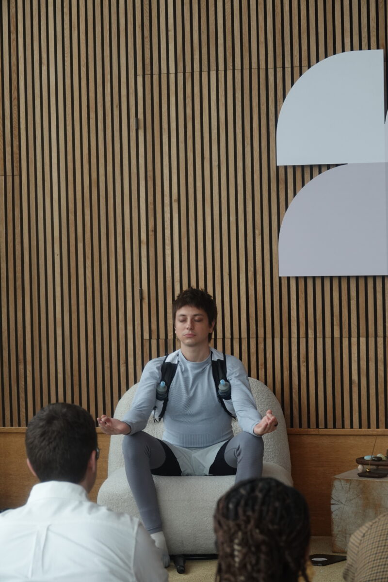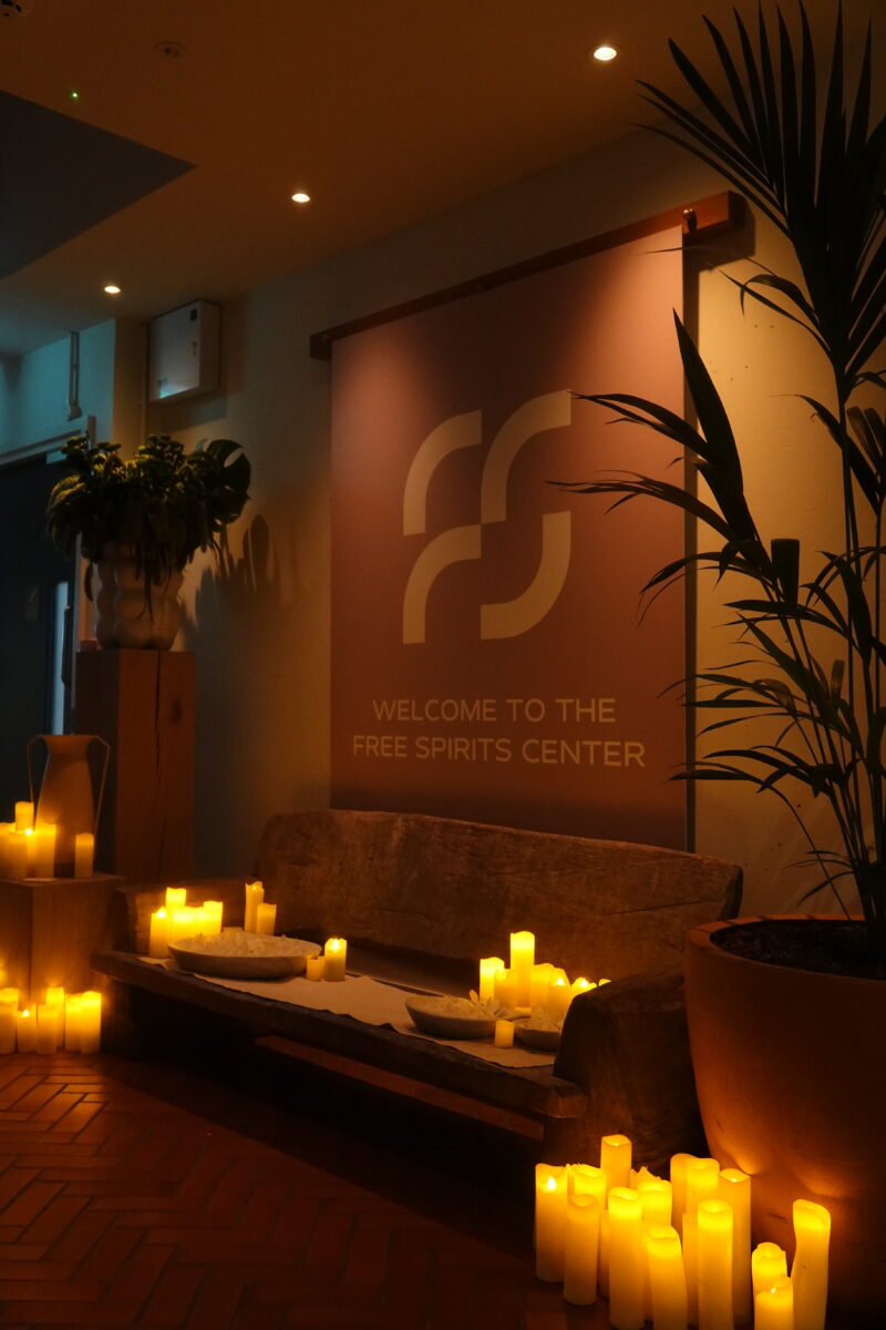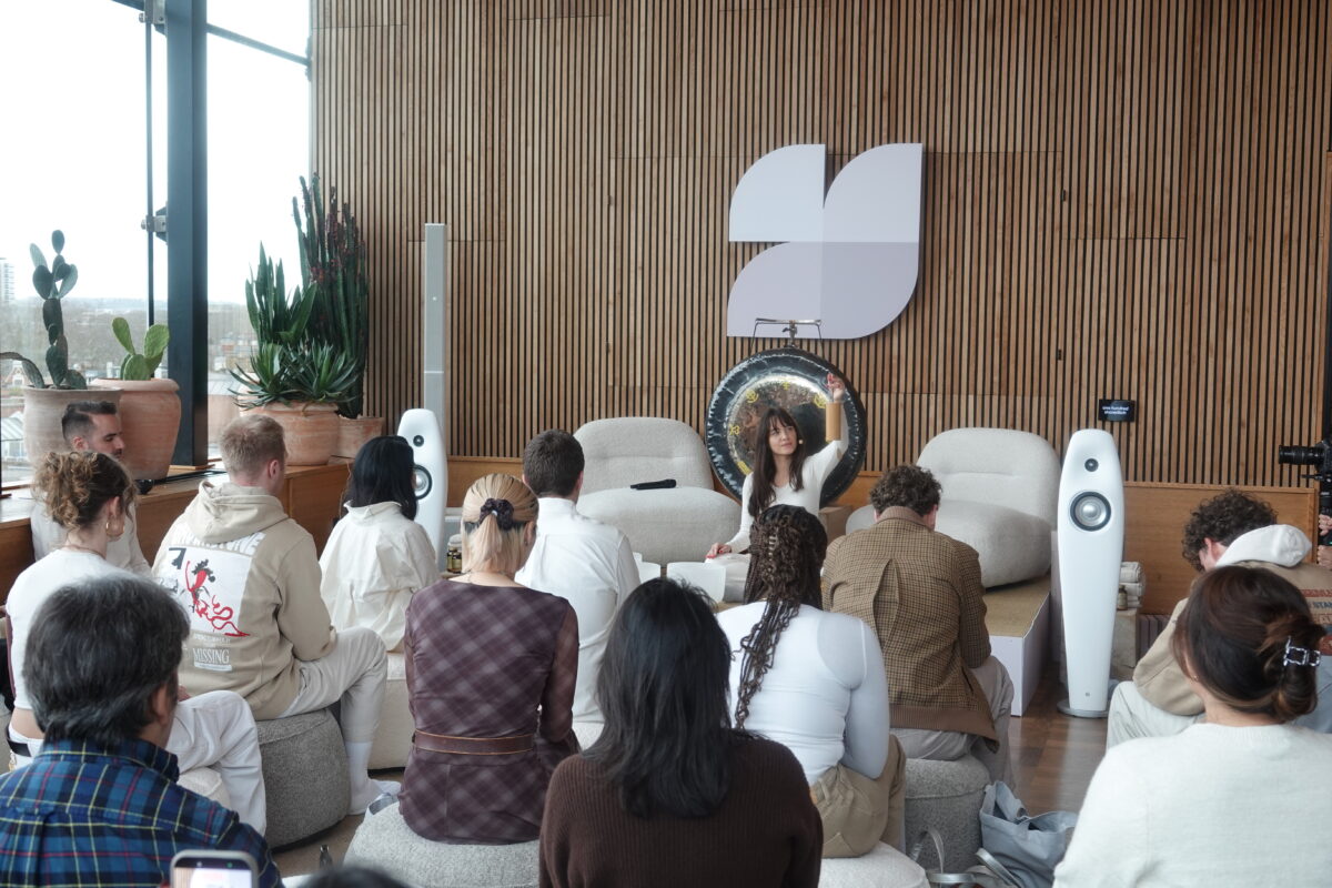 In collaboration with the artists and Sony Music, we created the “Free Spirit Centre” concept —a multi-sensory expression of the album itself. A stunning rooftop space was transformed into a spa-like sanctuary with soft furnishings, muted tones, candlelight, and calming scents. Guests eased into the experience with a soothing sound bath and cacao ceremony, setting the tone for the first listen. The full album playback was paired with a guided meditation led by the artists, as guests got comfy in their Free Spirit branded slippers! The result mirrored the album’s tongue-in-cheek yet atmospheric tone—something album collaborator Sting, the OG yogi, would have been spiritually aligned with—bringing the creative vision to life in a deeply immersive way.